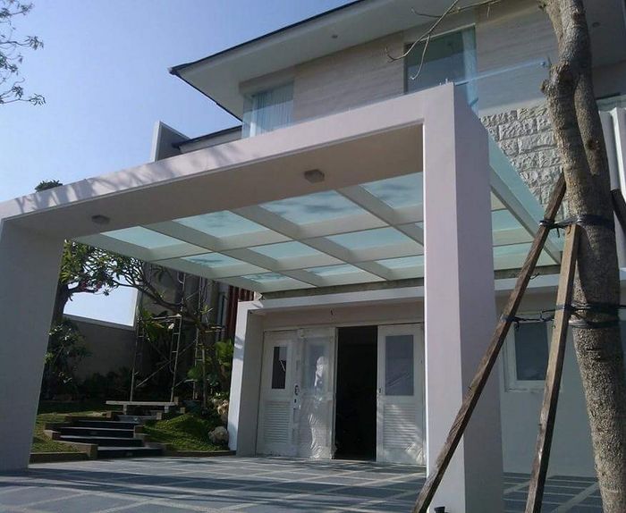 kanopi kaca mempunyai beberapa jenis yang berbeda dan sesuai dengan fungsinya. Jenis kanopi kaca tersebut adalah kanopi kaca biasa, kanopi kaca tempered, dan kanopi kaca laminated. Dari ketiga bahan ini bahan kaca tempered paling sering digunakan karena merupakan bahan terkuat dengan harga yang terjangkau. Adapun penggunaan kanopi kaca biasa mempunyai resiko tinggi karena jika terjadi keretakan atau pecah bisa menyebabkan serpihan kaca menyebar dan jatuh menimpa yang ada di bawahnya. Oleh karena itu pada umumnya penggunaan kanopi kaca biasa selalu dilengkapi dan dilapisi dengan sunblast untuk mengikat serpihan kaca ketika terjadi keretakan atau pecah kaca. Keuntungan yang pasti diberikan oleh kanopi kaca adalah kesan mewah dan elegan ketika berada di bagian eksterior rumah atau perusahaan. Berikut ini beberapa keuntungan lain menggunakan kanopi kaca yang mungkin bisa menjadi salah satu referensi sebelum memilih bahan kanopi.